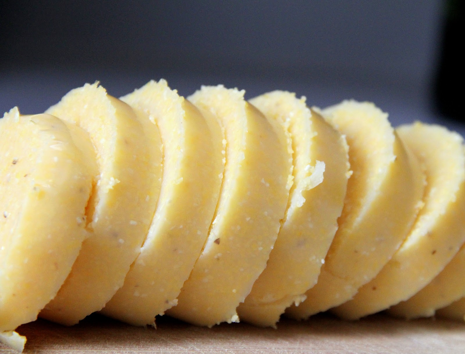 Polenta is a finely ground cornmeal that has been boiled with water or broth & constantly stirred for 45 minutes to make a type of porridge…but ain’t nobody got time for that so buy it in a pre-made tube from the supermarket.