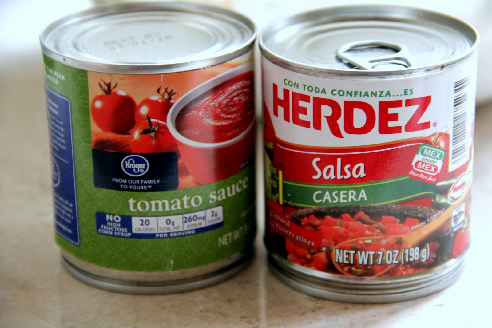 - 1- 8oz can El Pato tomato sauce (or regular tomato sauce...just add more spices!)