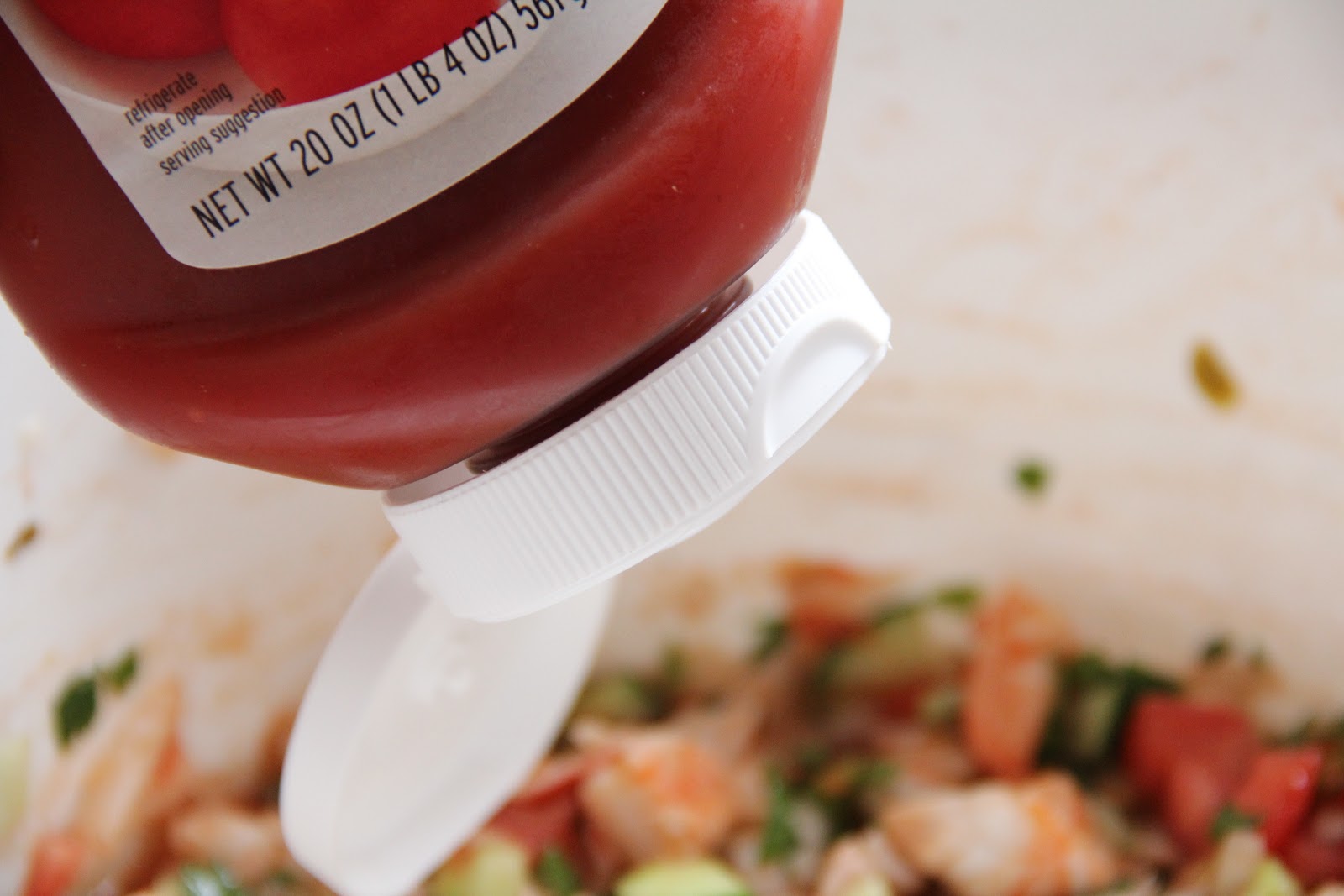 Ok, before you say, “oh gross”, just hear me out. A tablespoon of ketchup makes all the difference in this recipe. It adds a sweetness I haven’t been able to reproduce using other ingredients. I’ve made it with & without ketchup & when I leave it out, people will tell me that it tastes different. I agree. Once all the sauce is in there, add your spices, a couple of dashes of hot sauce (like Tapatio), cover with plastic wrap & place in the fridge for about an hour. It helps all the flavors develop and gives the shrimp & crab time to absorb some of those spices!