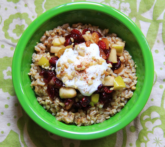 3 Comments on Breakfast Farro: Dried Fruit & Apple Infused Farro w/ Sweet Greek Yogurt